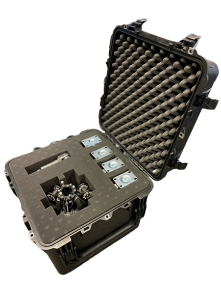 Our impact-resistant, durable transport case has been specifically designed to optimally protect your pipeline inspection robot and the associated camera during transport. Thanks to its resilient construction, the case provides comprehensive protection against shocks, vibrations, and other external impacts. This ensures that your high-quality inspection equipment arrives safely and intact at the site. The case is practically designed to allow for secure storage and easy transport of the entire equipment—ideal for mobile operations.